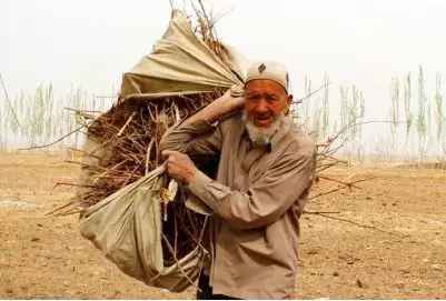 图为126岁的新疆老人图如普·艾麦提在下地干活